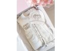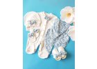 4-dielny set SISI vhodné pre rôzne oslavy a spoločenské udalosti i iné dôležité okamihy v živote dievčaťa. Set obsahuje: elegantné saténové šaty na krst krémovej farby, bavlnené body s dlhým rukávom, saténové capačky a bielu bavlnenú čelenku s mašľou.